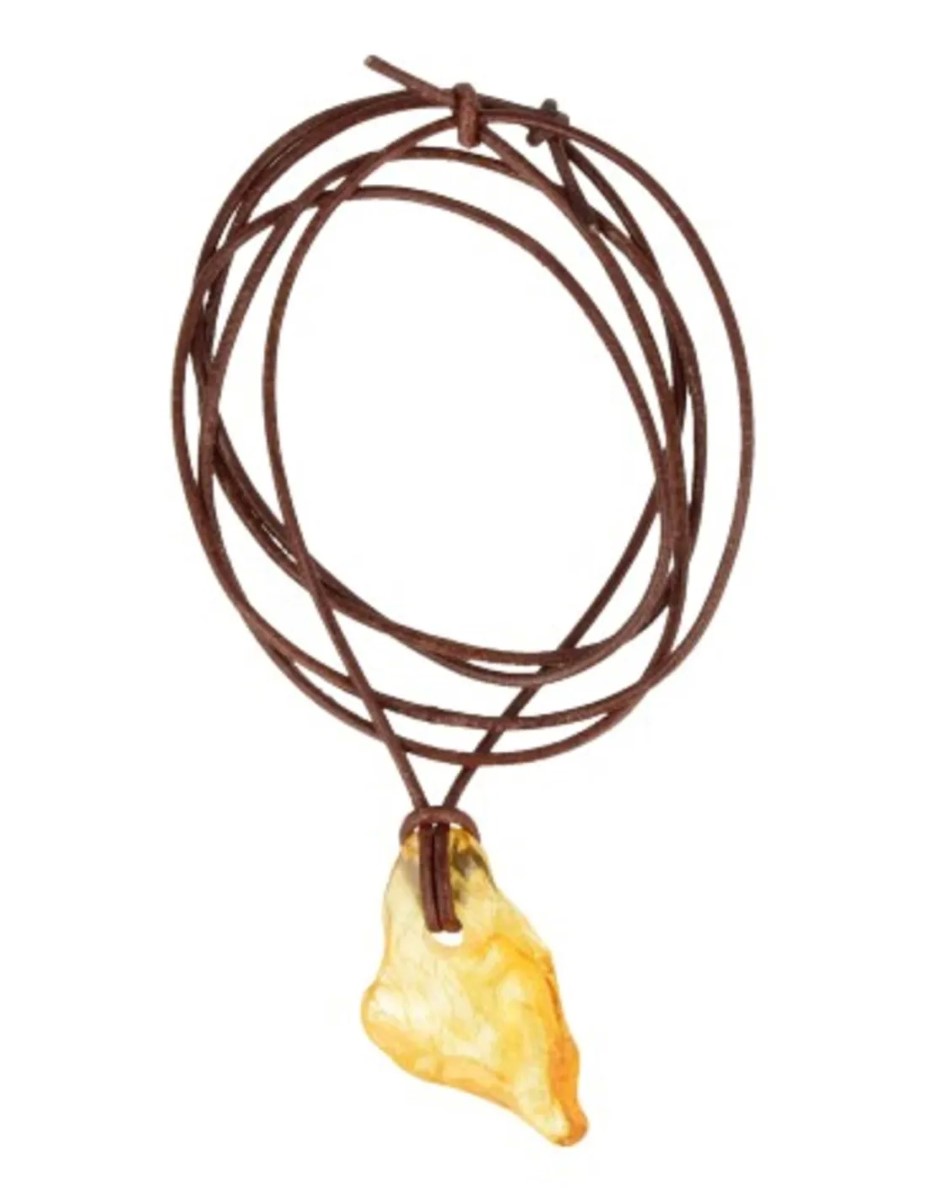 Edelsteen hanger van Barnsteen (Amber). Deze Barnsteen hanger is ca. 2-3 cm lang en heeft een geboord gat voor een koord. Let op! Ieder stuk is uniek en kan daarom afwijken van de foto. Wordt geleverd zonder ketting.