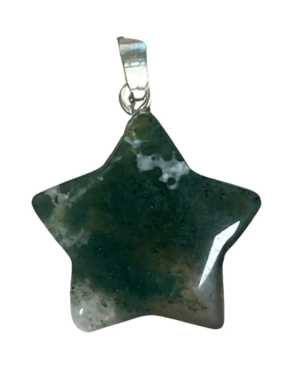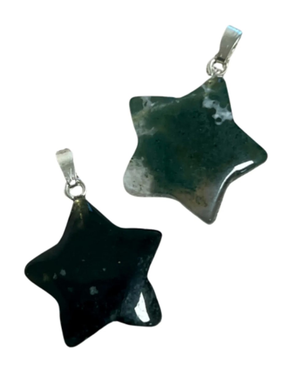 Een schattige edelsteenhanger in ster-vorm van de Agaat mos steen, deze hanger is ca. 2,5 x 2 cm, maar let op, hij wordt geleverd zonder ketting. Een perfecte hanger om cadeau te geven of te krijgen.