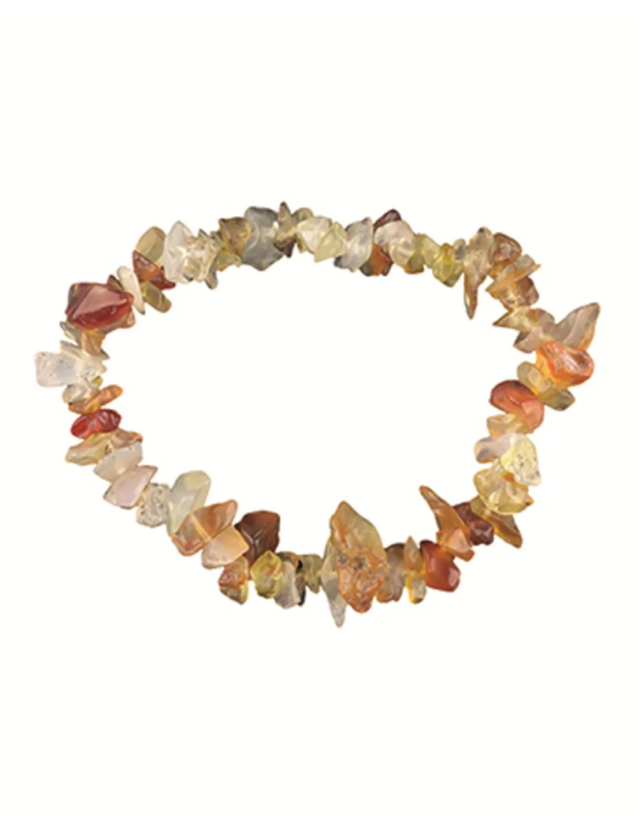 Split kinderarmbandje van de half-edelsteen Carneool. Het armbandje is 13 cm lang en geregen op elastiek. De binnenmaat is iets kleiner vanwege de stenen.