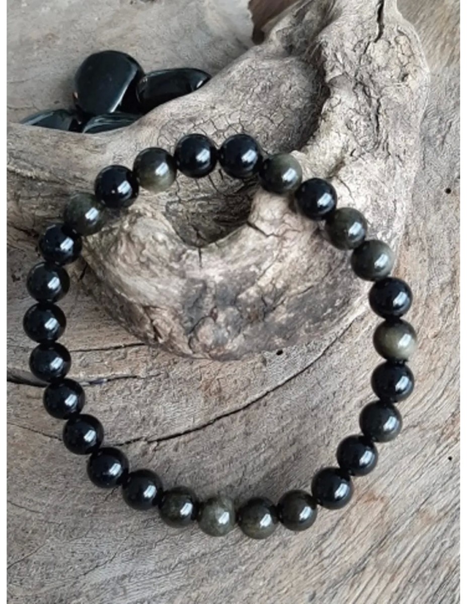 Een kralenarmband voor mannen van ca. 18 cm lang met 8 mm kralen van de bijzondere edelsteensoort Obsidiaan goud, geregen op elastiek. Deze Obsidiaansoort kenmerkt zich door de gouden gloed in de kralen, wil je ze beter zien? Gebruik dan even een felle lamp, zoals die van je telefoonflitser.