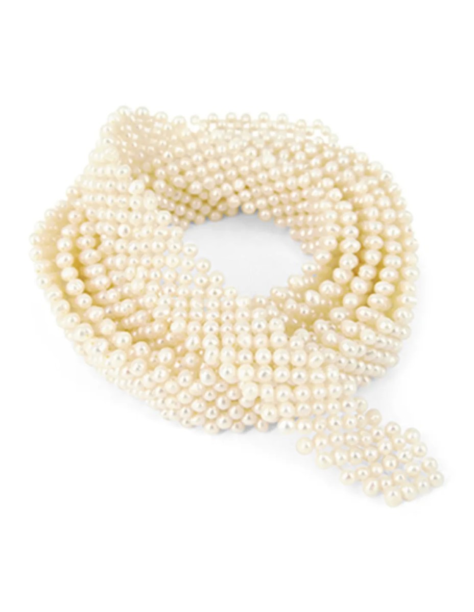 Dit mooie parelsnoer is opgebouwd uit 7 rijen zoetwaterparels van 4 mm doorsnede. Deze streng is ruim 1,4 meter.