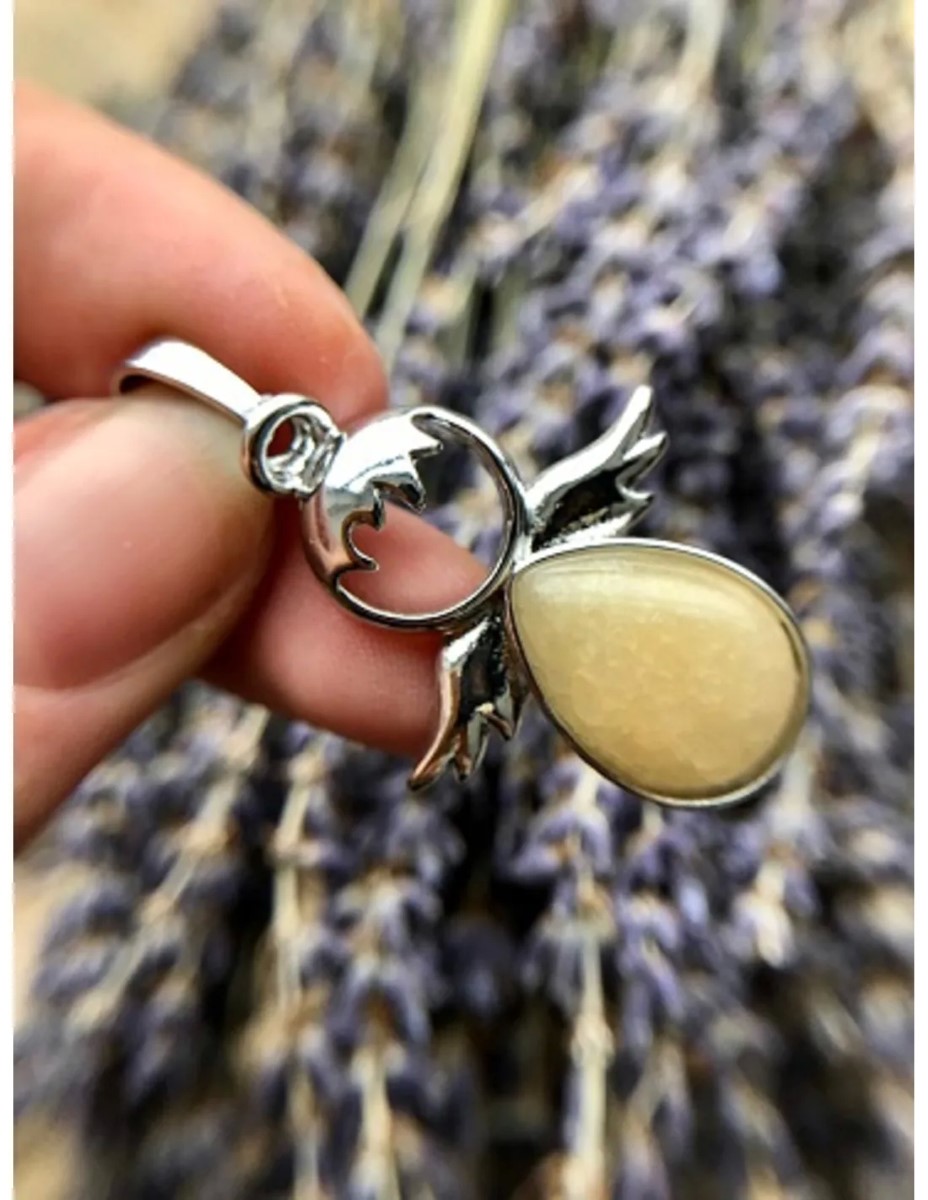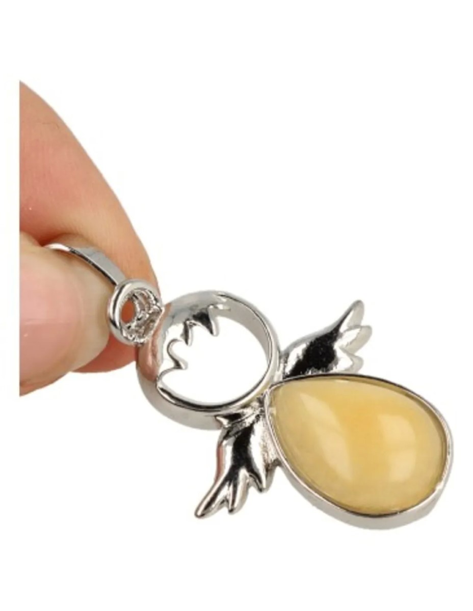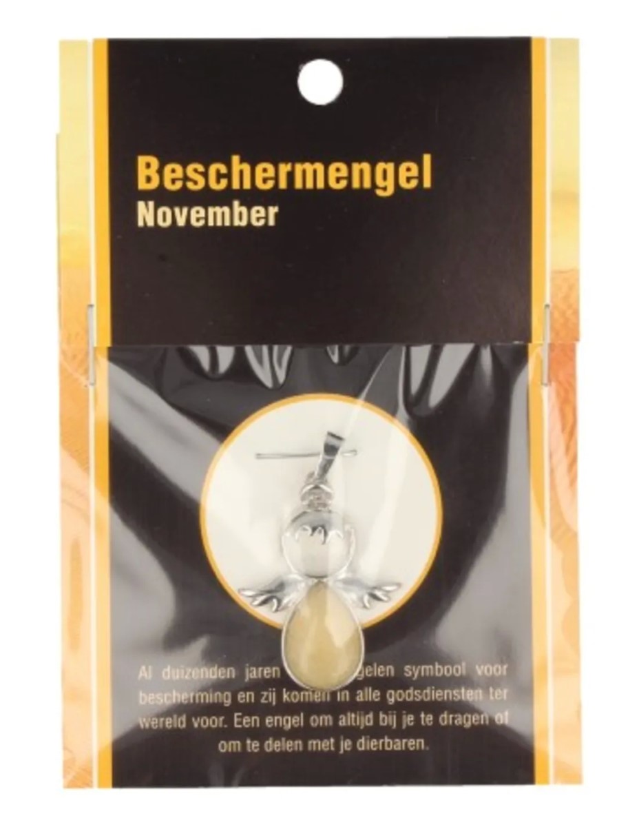 Beschermengel hanger November op kaartje – een zilverkleurig engeltje van 3.5 cm met een lijfje van gele Calciet. Het engeltje wordt geleverd zonder ketting.