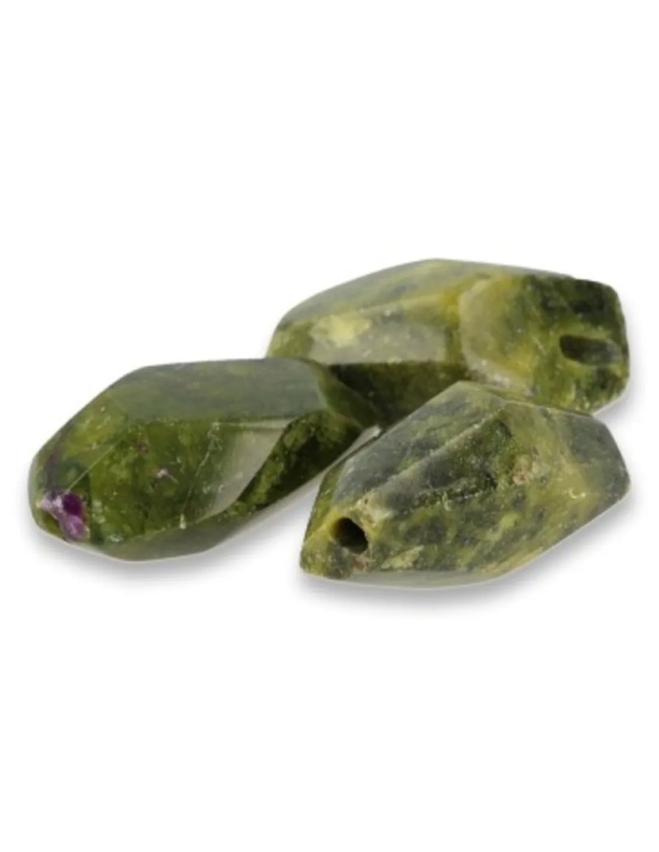 3 geslepen atlantisiet kralen van ca. 17 mm lang. Dit artikel is ook geschikt voor displays. Leuk om bijvoorbeeld sieraden mee te maken.