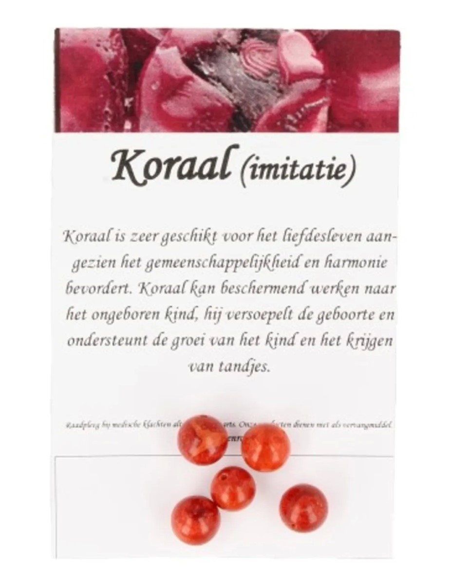 Ronde rode kralen van Koraal imitatie met een doorsnede van 9 mm. In het zakje zitten 5 ronde Koraal kralen. Let op! Dit is Koraal imitatie.