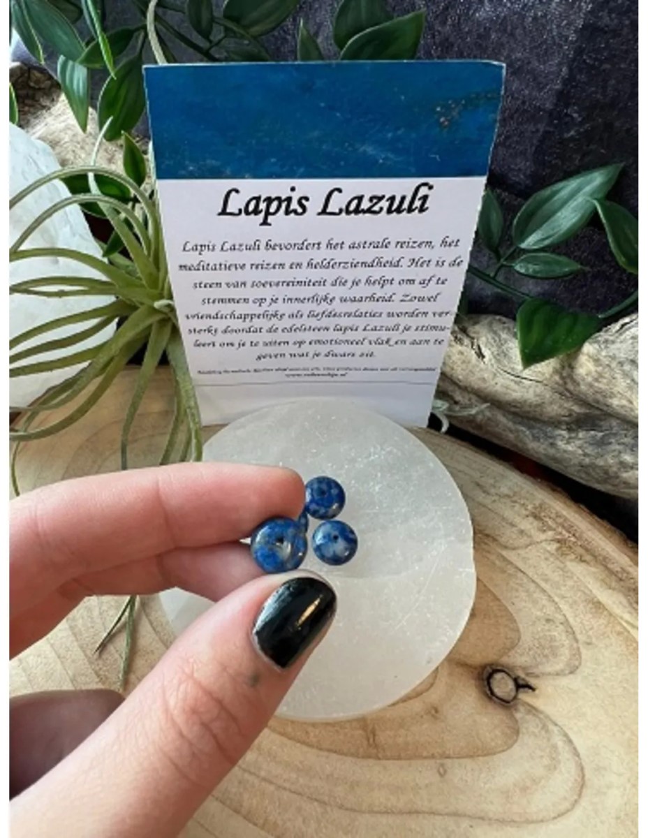 Lapis Lazuli kralen van 10 mm. In het zakje zitten 4 discvormige Lapis Lazuli kralen. De vindplaats is Afghanistan. Dit artikel is ook geschikt voor op displays.