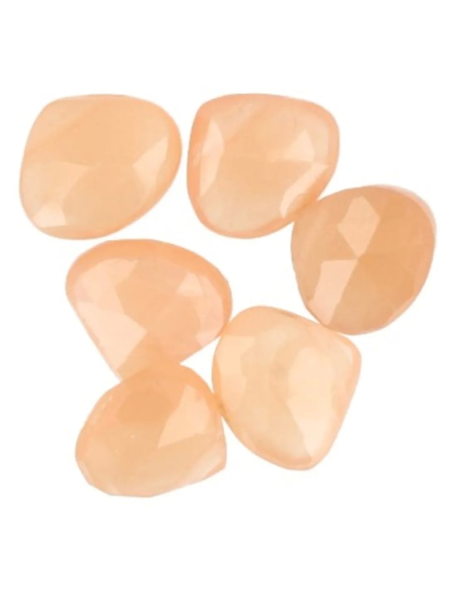 6 kleine mooi facet geslepen kralen in druppelvorm gemaakt van de edelsteen Maansteen oranje. De leuke kleine kralen hebben afmetingen van 0.8 x 0.7 cm.