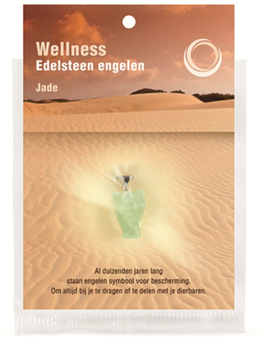 Jade engelenhanger op displaykaartje. De hanger is 20 mm.