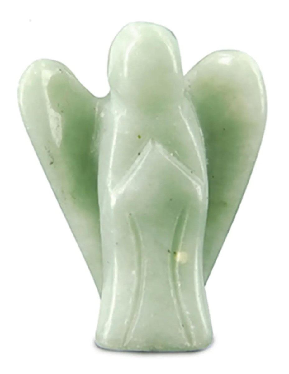 Serpentijn (Jade) engelenhanger op displaykaartje. De hanger is 20 mm.