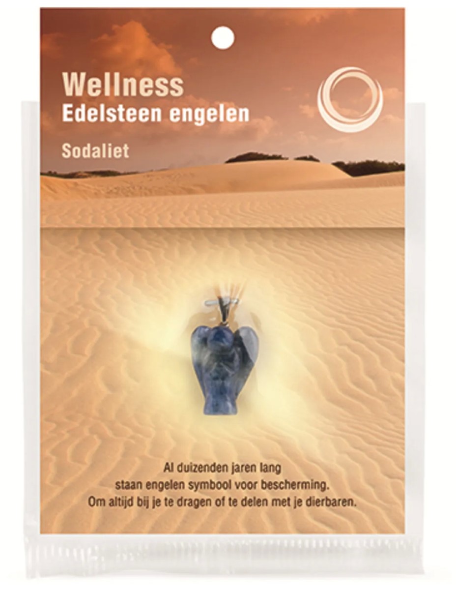 Sodaliet engelenhanger op displaykaartje. De hanger is 20 mm.