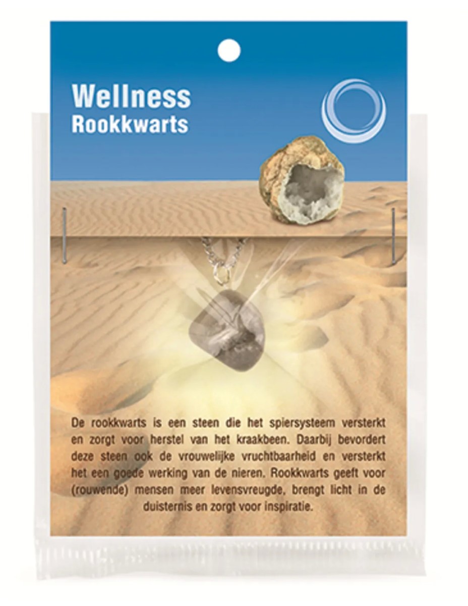 Gezondheidshanger Rookkwarts. Edelsteenhanger, op een displaykaartje incl. RVS ankerschakel kettinkje