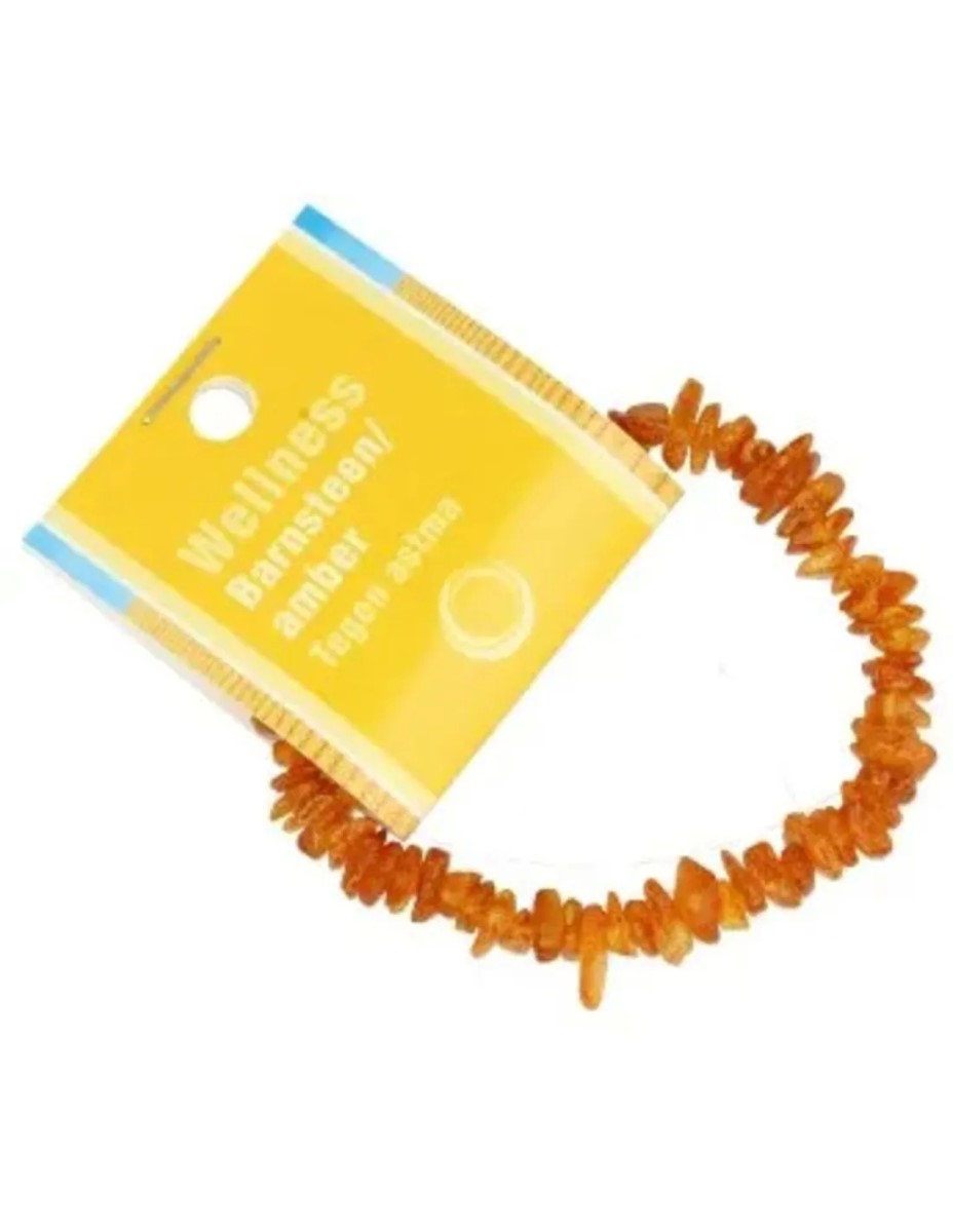Barnsteen edelstenen split armband met displaykaartje, ca. 17 cm lang en geregen op elastiek.