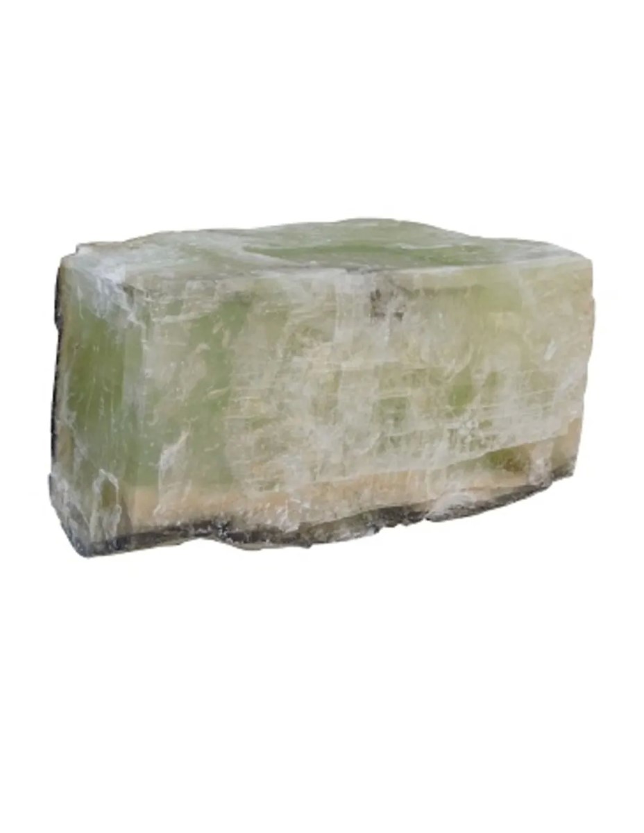 Groot blok heldere groene Calciet, 26,75 kilo en de maten zijn 30 x 20 cm en 19 cm hoog.