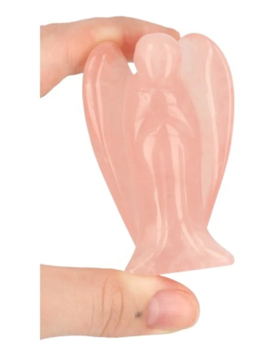 Prachtige staande engel van Roze kwarts. De Roze kwarts engel is 70 mmm lang en 45 mm breed. De engel weegt ca. 100 gram.