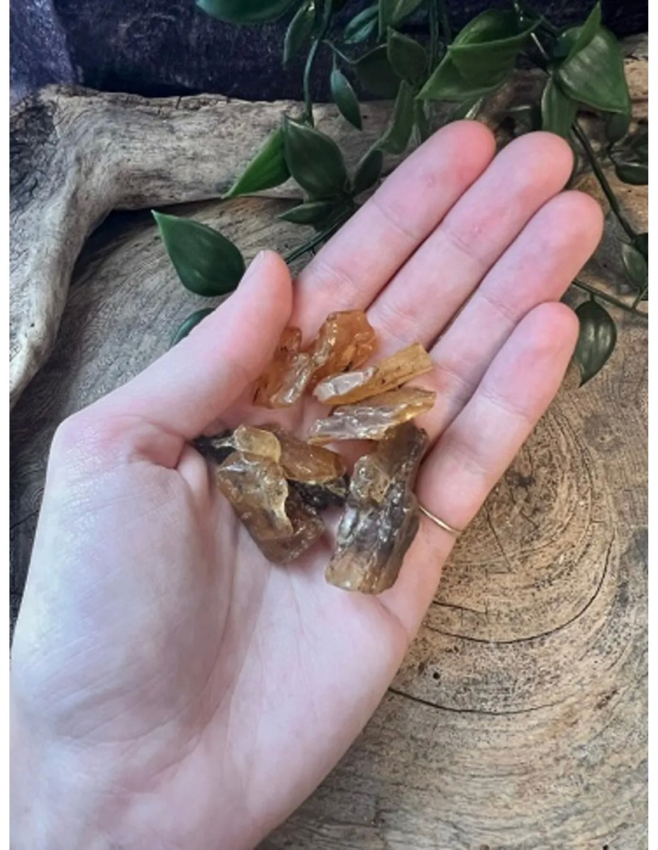 20 gram half ruwe Copal trommelstenen. In 20 gram zitten ca. 2 tot 8 Copal trommelstenen. De trommelstenen zijn 2 – 4 cm.