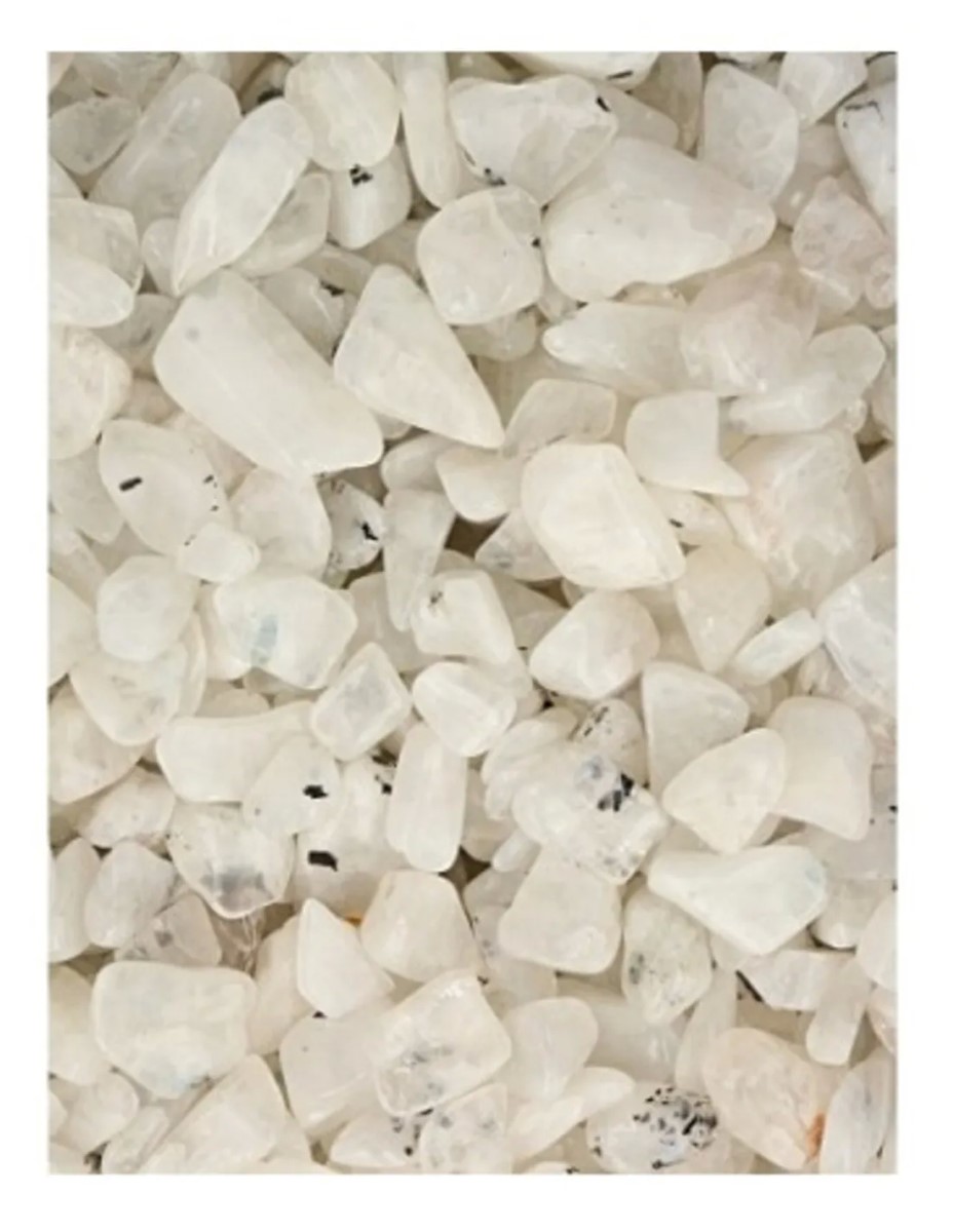 Maansteen regenboog gepolijste steentjes van ca. 5-10 mm.