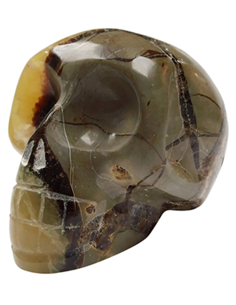 Kristallen schedel (skull) van Septarie van ca. 14 cm lang.