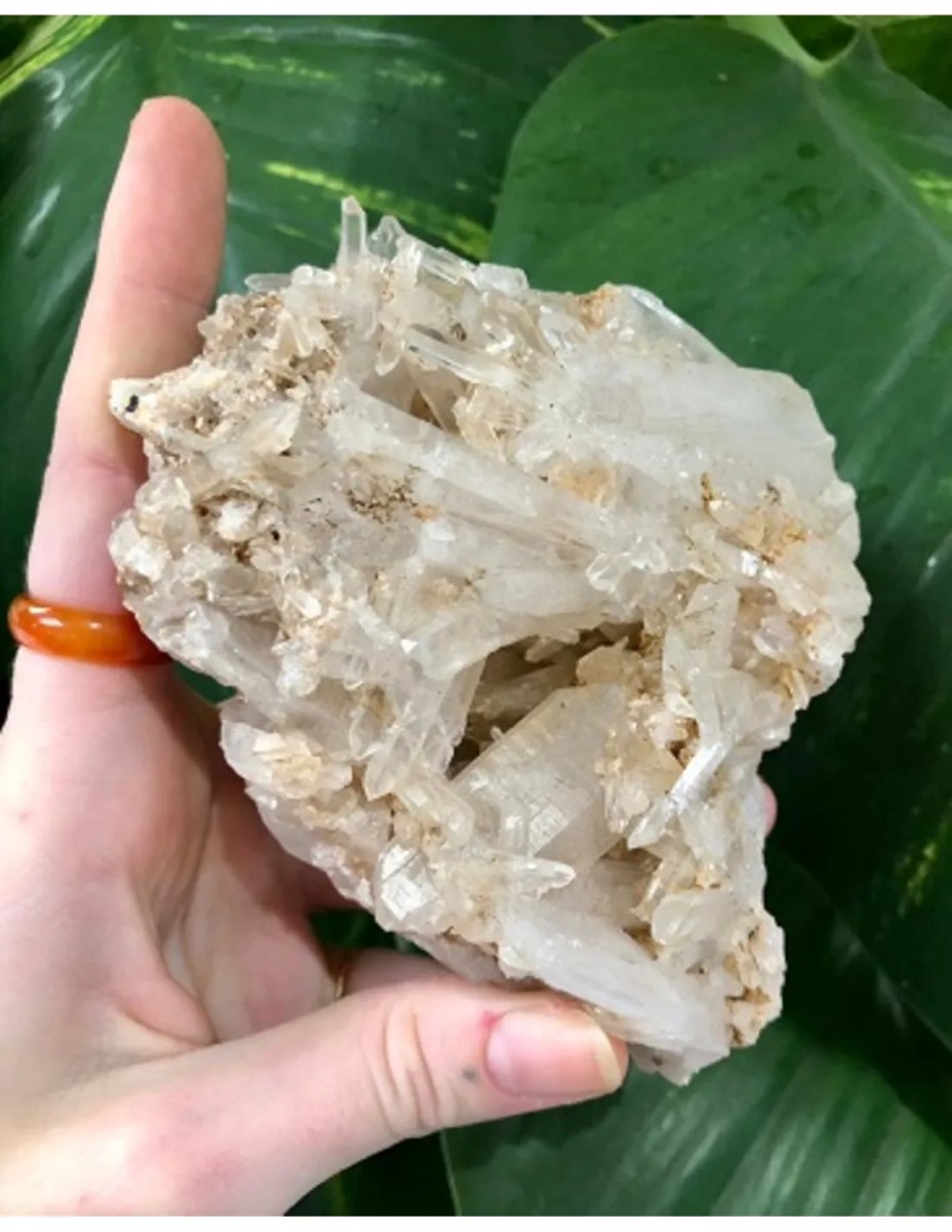 Deze steen kan alle 1 van deze of alle 3 bevatten: Bergkristal / Lemurisch kristal / Fadenkwarts. Herkomst Marokko. Gewicht is 439 gram en de afmetingen zijn 10 x 10 x 9 cm.