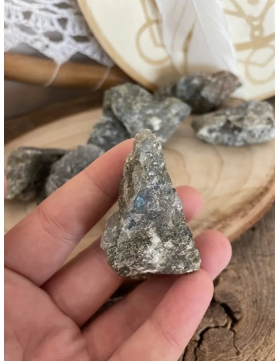 250 gram ruwe brokjes van Labradoriet. De Labradoriet brokjes zijn ca. 3 – 5 cm groot. In 250 gram zitten ca. 7 brokjes. De vindplaats is Madagaskar.